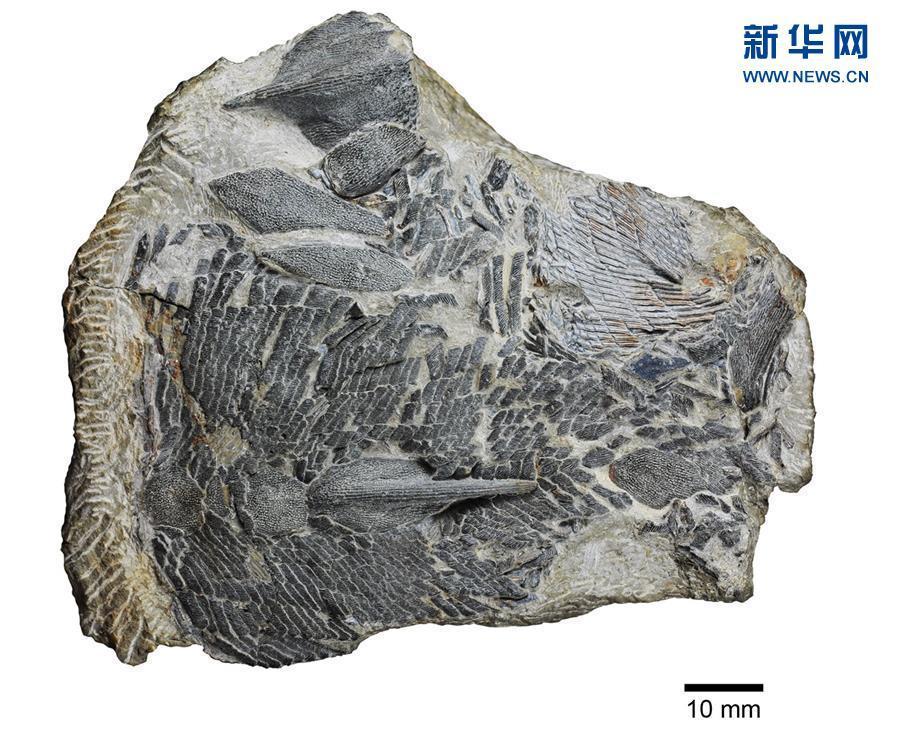 图为发现的丁氏甲鳞鱼化石(中国科学院古脊椎动物与古人类研究所研究员朱敏供图)。中科院科学家在云南曲靖市发现了一种4.2亿年前身披奇特鳞片的古鱼——丁氏甲鳞鱼化石,证明早在志留纪(4.44-4.19亿年前)地球就已经进入了“鱼类时代”。相关成果已于近日发表在国际期刊《公共科学图书馆-综合》上。据论文通讯作者、中国科学院古脊椎动物与古人类研究所研究员朱敏介绍,这条丁氏甲鳞鱼约20多公分长,身体覆盖着厚密、坚硬的菱形鳞片。它的发现为探索有颌脊椎动物的早期分化及硬骨鱼类的起源提供了新的化石实证。图片来源:新华网