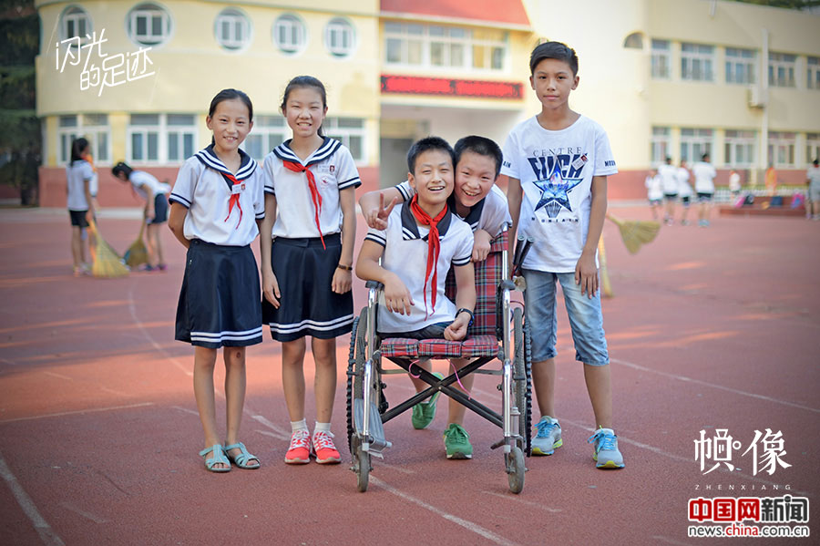 2016年09月01日,山东省青岛市,“无腿少年”高志宇和他的同学们。(视觉中国)