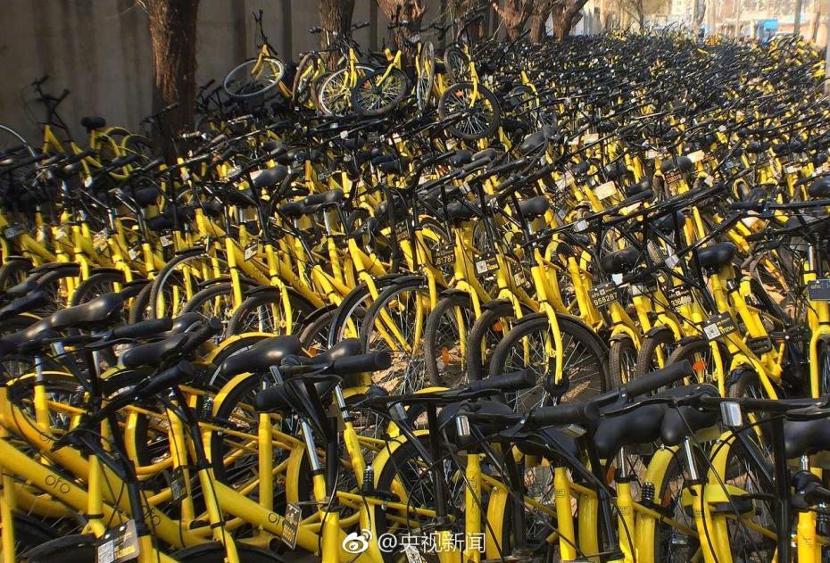 在北京某共享单车修理点,4000多辆受损单车在等候修理。据了解,这里每天收到超400辆单车,其中近两成将报废;工作人员每天也只能修20辆左右。车牌二维码损毁、零部件丢失和私加车锁等成最常见问题。央视记者马力 图片来源:央视新闻微博