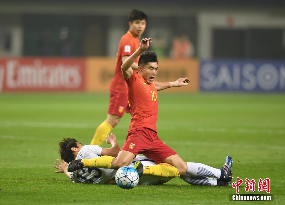 中国队与韩国队队员正在积极拼抢。 中新社记者 杨华峰摄