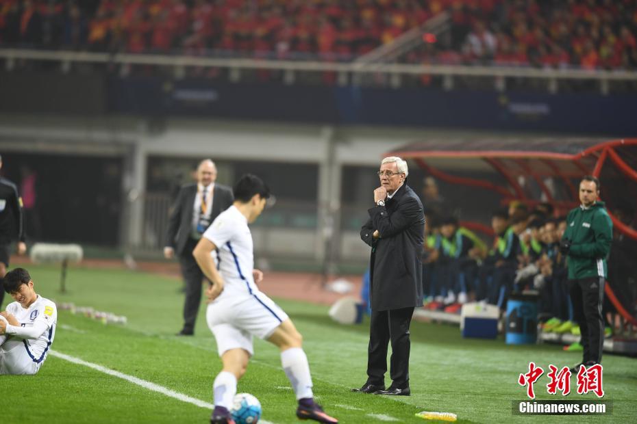 中国队主教练里皮现场指挥。 中新社记者 杨华峰 摄