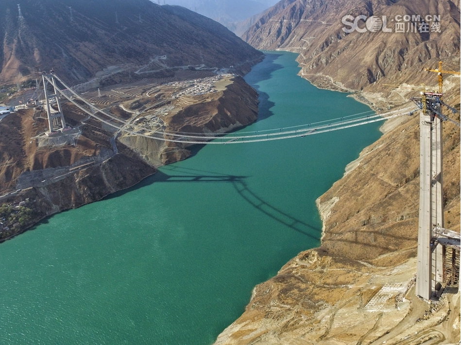 兴康特大桥是一座建设在高海拔、高地震烈度带、复杂风场环境下的超大跨境钢桁梁悬索桥,全桥长1411米,主跨长1100米,为四川第一跨径悬索桥。因其施工难度大,建设要克服很多世界难题,也被称作“川藏第一桥”。
