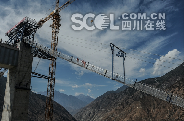 4月5日,四川泸定境内,大渡河上方269米高处,经过2小时施工,川藏第一桥、雅康高速泸定大渡河兴康特大桥首根主缆索股成功架设。由此,川藏第一桥上部构造主体工程施工正式启动,预计8月完成全桥主缆架设,并进入钢桁梁吊装施工,2018年8月底,全桥建成贯通。甘孜藏区迎来首条高速大通道已指日可待。