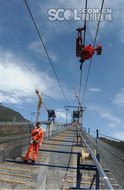 4月5日,四川泸定境内,大渡河上方269米高处,经过2小时施工,川藏第一桥、雅康高速泸定大渡河兴康特大桥首根主缆索股成功架设。由此,川藏第一桥上部构造主体工程施工正式启动,预计8月完成全桥主缆架设,并进入钢桁梁吊装施工,2018年8月底,全桥建成贯通。甘孜藏区迎来首条高速大通道已指日可待。