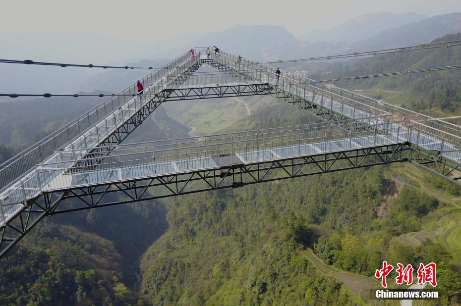 4月6日,重庆一景区内“天空悬廊”吸引众多市民前往体验。悬廊成“A”字形,桥面铺设全透明玻璃,由于悬空于近300米高的悬崖峭壁之上,又沿悬崖向外延伸在80米的空中,因此取名为“天空悬廊”。相比美国科罗拉多观景廊桥向外悬挑21米,天空悬廊向外悬挑80米更为惊险刺激。目前,该项目正在申请吉尼斯世界纪录。周毅 摄