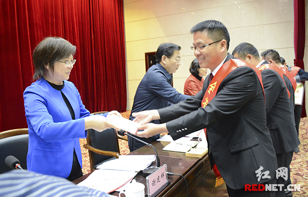 今天上午,第四次湖南省自强与助残表彰大会暨第五次全省残疾人事业工作会议在长沙召开。会议对全省自强模范与助残先进集体代表和个人进行了表彰和颁奖。湖南省副省长、残工委主任谢建辉出席并为获奖个人及集体颁奖。根据会议部署的“十三五”湖南省残疾人工作总体目标,到2020年,湖南农村建档立卡贫困残疾人将全部脱贫。