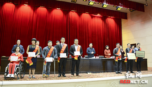 湖南省副省长、残工委主任谢建辉为获奖个人及集体颁奖。