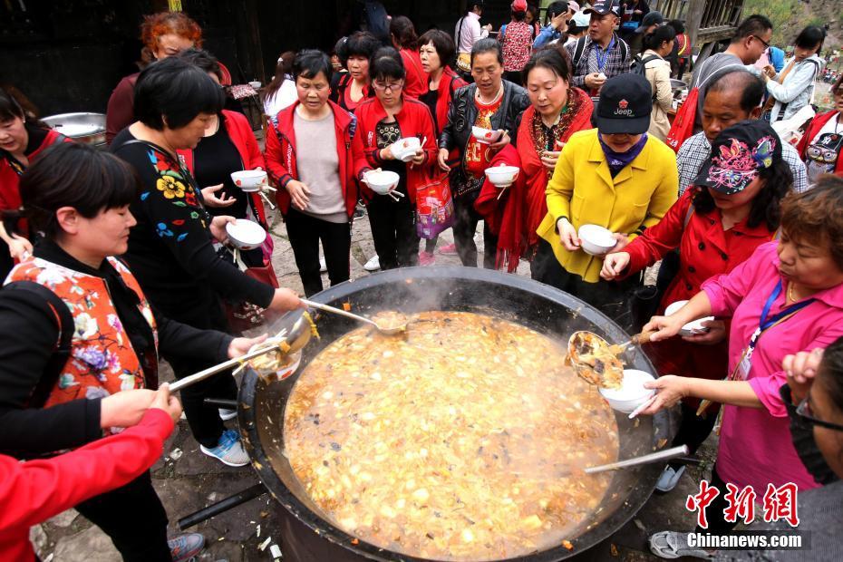 4月15日,三千余名民众汇集河南济源愚公故里的小沟背愚公村,共吃自助“大锅饭”,感受部落生活,体验农耕气息。当日,六七口大锅、十几个大盆一字排开,劈柴烧出热腾腾的大锅饭吸引大批民众一起大快朵颐。