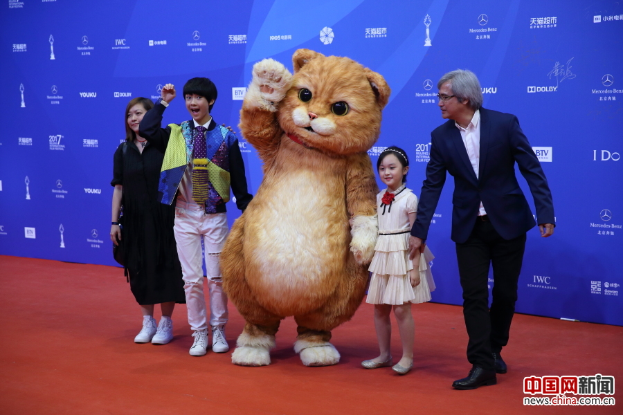2017年4月16日,第七届北京国际电影节开幕红毯仪式上,《喵星人》剧组走进红地毯区。中国网记者 陈维松 摄