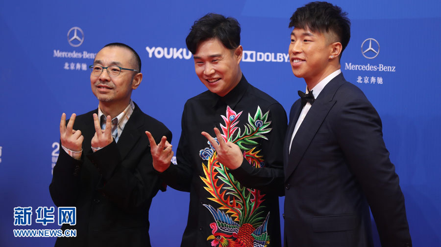 4月16日,第七届北京国际电影节在北京怀柔区国家中影数字制作基地开幕。图为演员小沈阳刘仪伟等。新华网 李清摄
