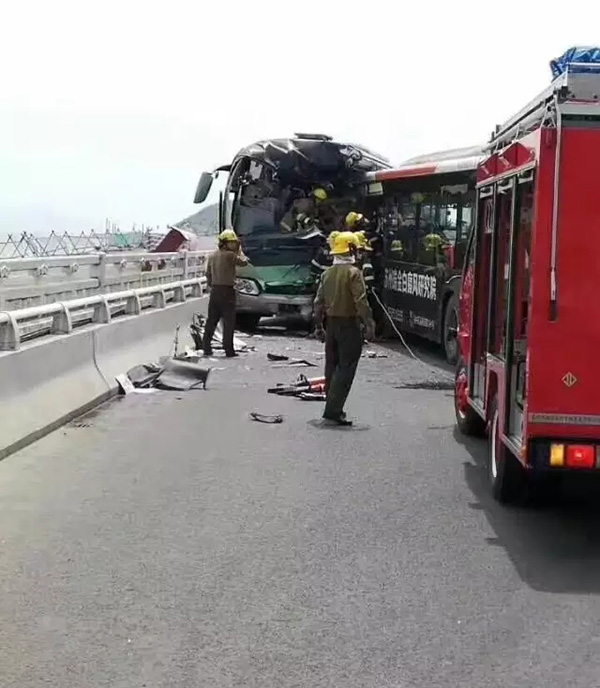 苏州太湖大桥一公交车与大客车相撞 已致1死39伤