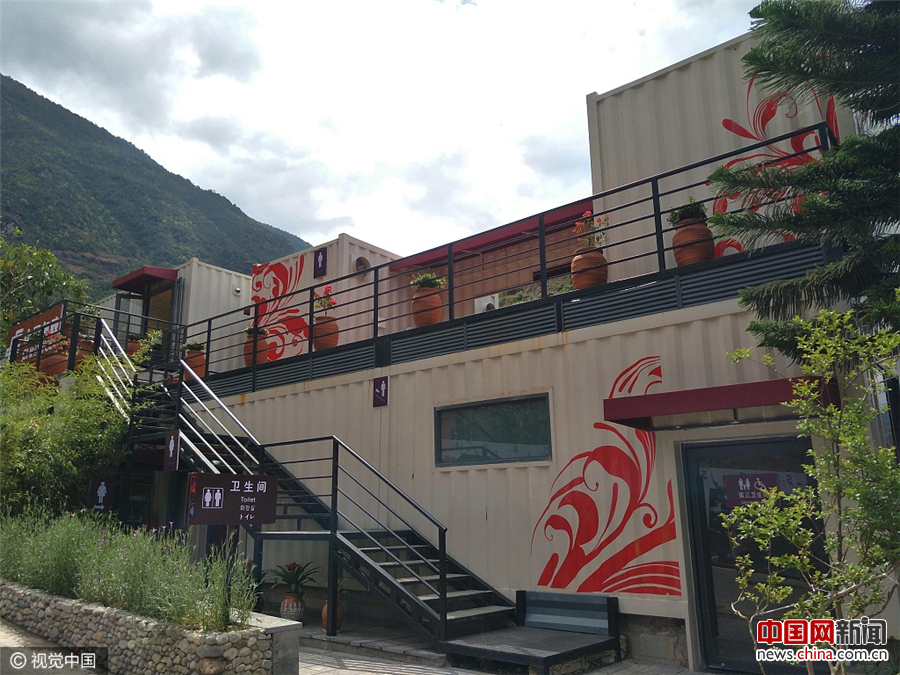 2017年4月7日,云南大理石门关景区,有一座造型新颖美观、占地面积小、移动灵活、并可重复移动使用集装箱房式设计的180度无死角透明观景厕所,总面积约160余平方米。厕所外观落地玻璃采用单透膜,让游客边上厕所,还可以边欣赏景区优美的风景。李明/视觉中国