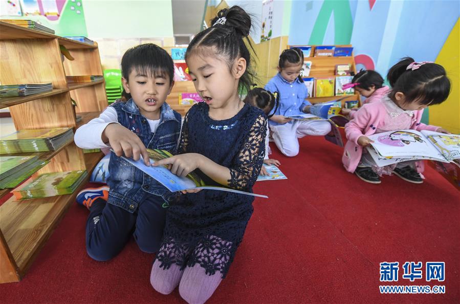 4月23日,河北景县一个幼儿园的小朋友在读书角读书。当日是世界读书日,各地读者纷纷来到图书馆、书店等地,阅读图书,品味书香。新华社记者 李晓果 摄