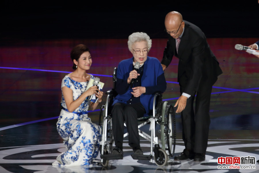谭咏麟献花献唱 致敬老一辈电影人秦怡和罗家英