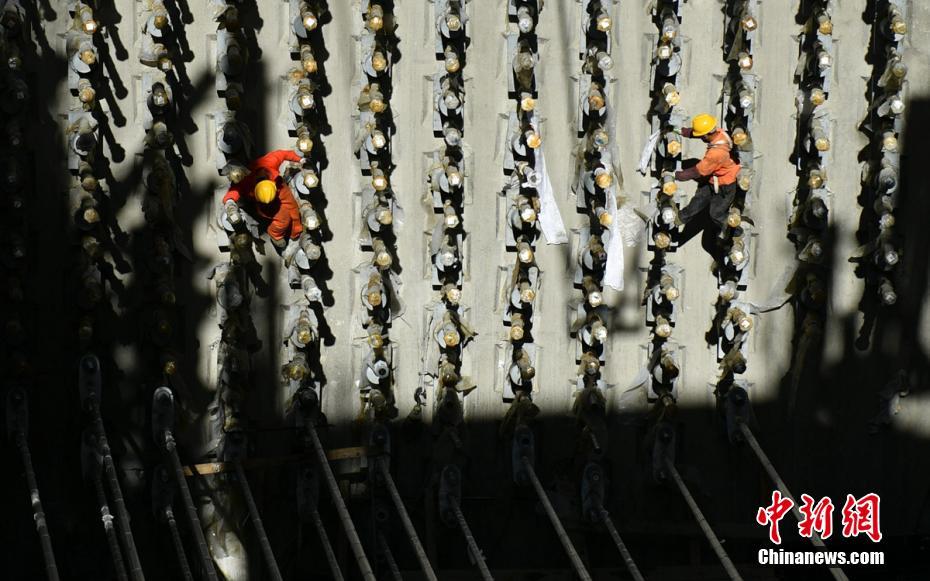 阳光下正在施工作业的工人师傅。刘忠俊 摄