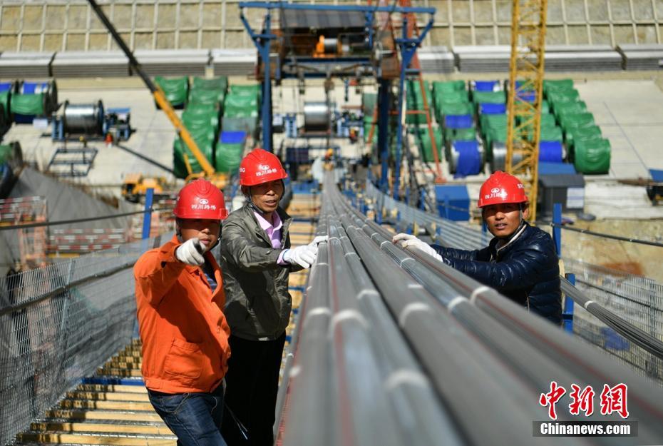 记者走上“猫道”心里很紧张,行走中总是小心翼翼,感觉稍有不慎随时都会掉下桥,与记者一起上桥的工程技术人员一路上不断提醒,别紧张,尽量放松些。沿着“猫道”从大桥一端走向另一端记者花了约2小时左右时间。刘忠俊 摄