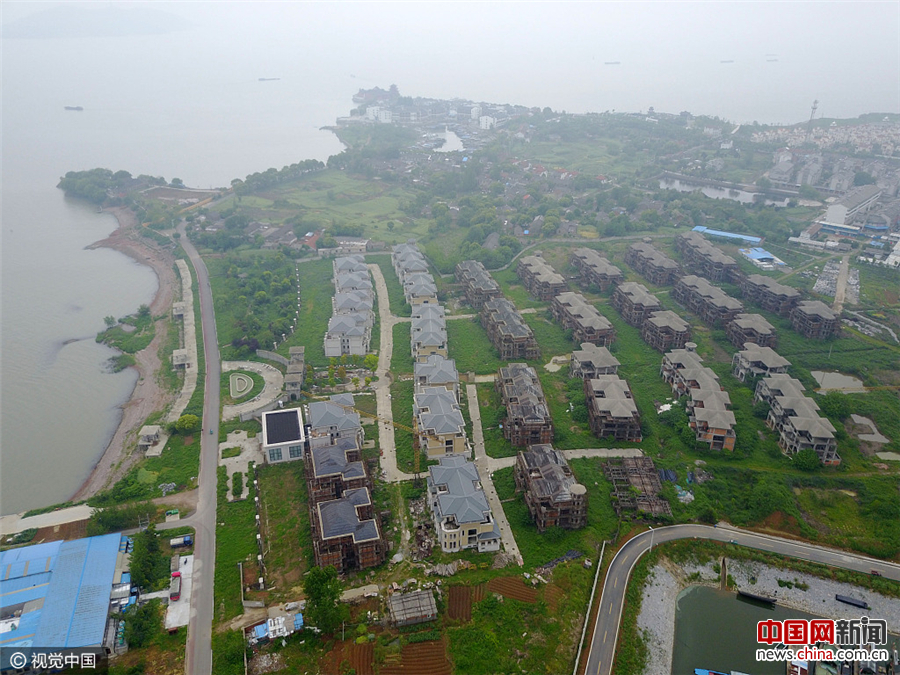 巢湖北岸烂尾别墅区航拍图。观语/视觉中国