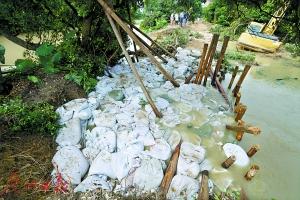 雨后,花都花山镇两龙村一处河道出现溃口,部队官兵经过数小时奋战,缺口已经被堵住。