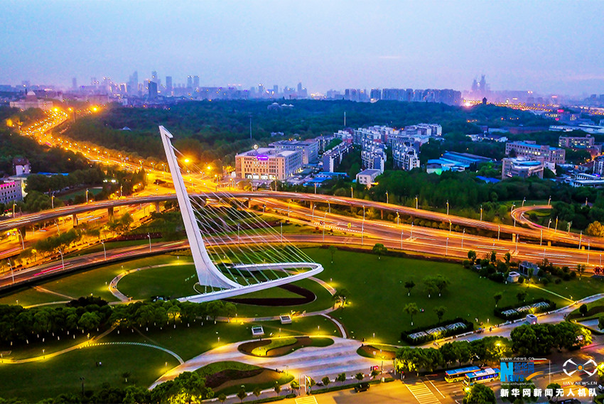 夜幕降临,华灯初上,南京卡子门立交桥如闪亮的光影“演奏会”。新华网发(席航飞 唐杨摄)