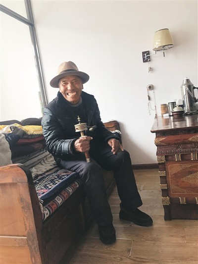 在五保集中供养服务中心居住的藏族老人边觉。本报记者 李贞摄