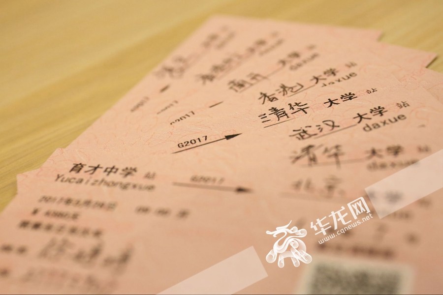 G2017代表同学们乘坐的是高2017级“列车”,发车时刻则是同学们模考开始的时间。车票上还印着¥4380天的字样,代表着同学们从小学到高考的求学时间。不禁让人感叹,为了登上通往理想的列车,同学们背后所经历的漫长时光。