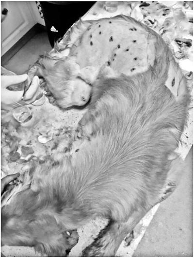 金毛犬身体一侧有十多处伤口