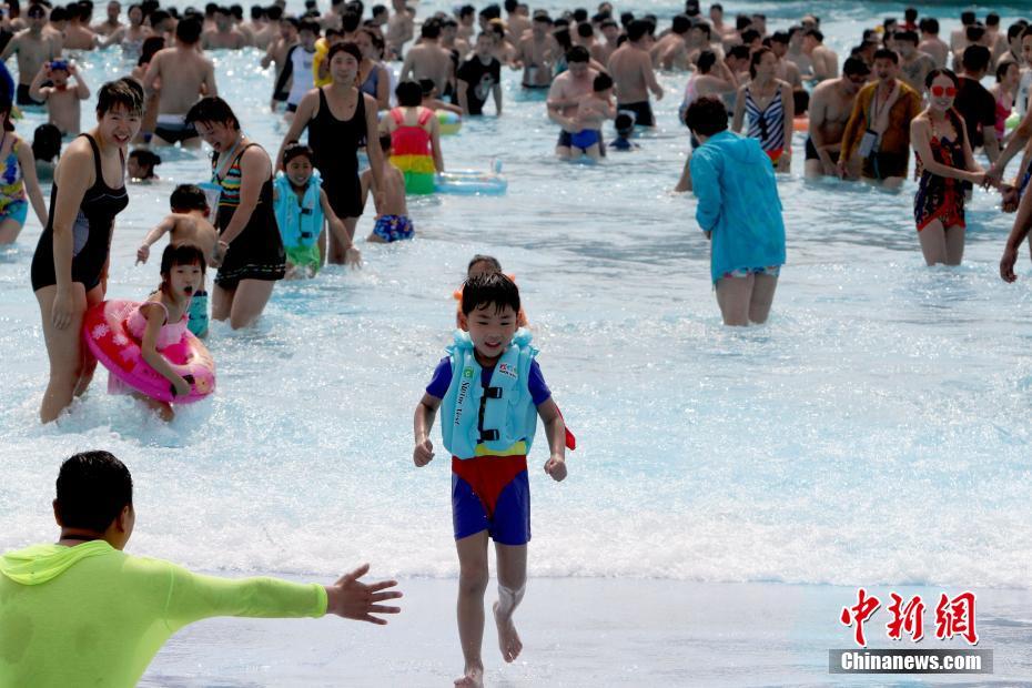 5月28日,端午假期首日,中国中东部地区出现大范围晴热天气,其中华北部分地区日最高气温达36℃以上。当日,天津滨海水魔方水上乐园刚刚开园,即涌入来各地的数千游客戏水游玩,躲避炎暑。中新社记者 张道正 摄