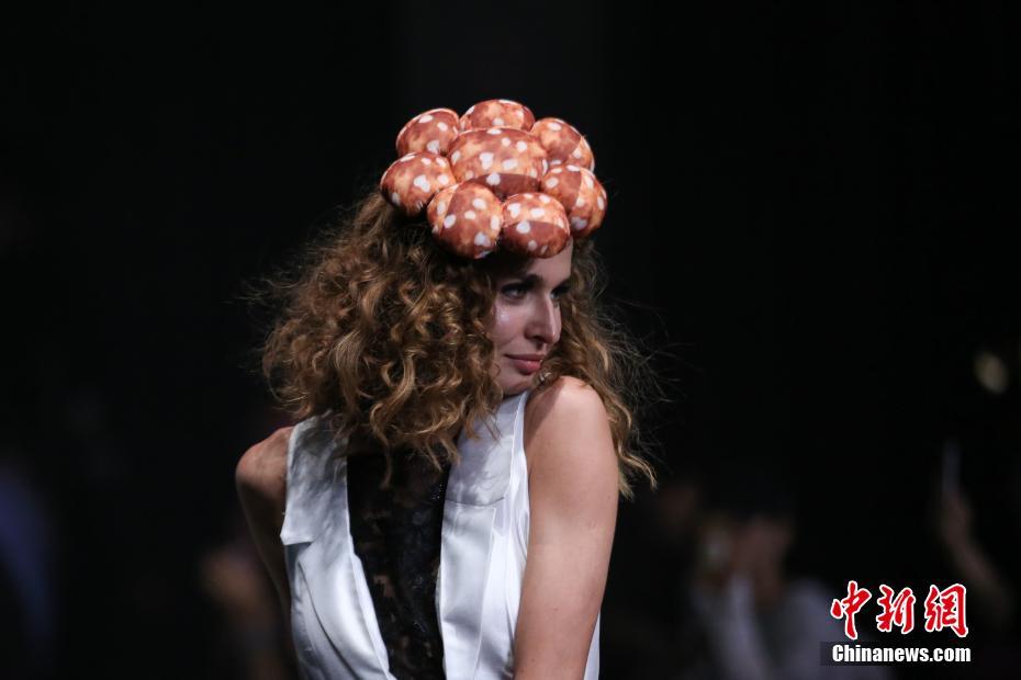 6月2日,模特在台上展示面包时装。当日,一场以“面包的童话”为主题的时装秀在北京上演,创意十足的面包礼服为观众带来一场视觉盛宴。中新社记者 熊然 摄