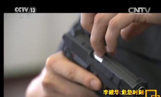 李建华:我当时坚持了几十秒钟,而且我在这个过程当中,并不是只是放进去,我这个手还要有动作,我还要去弄它,当时就划破了,我一直抓着,感觉手已经插进去了,枪的状态就是卡壳一样。