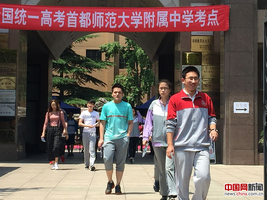 首都师范大学附属中学考场考生考完语文后,陆续走出考场。中国网 张艳玲 摄