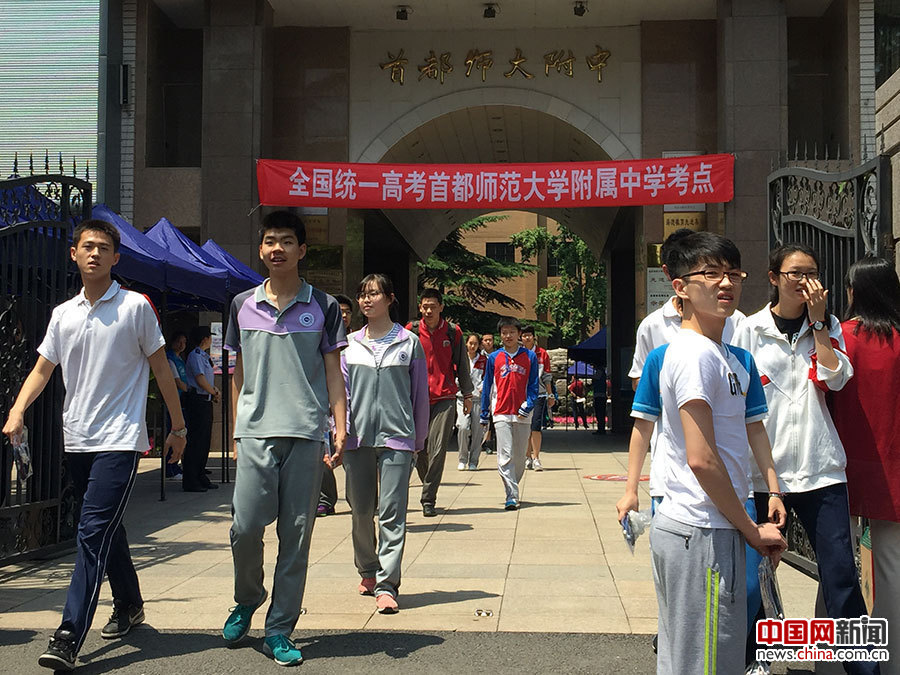 首都师范大学附属中学考场考生走出考场。中国网 张艳玲 摄