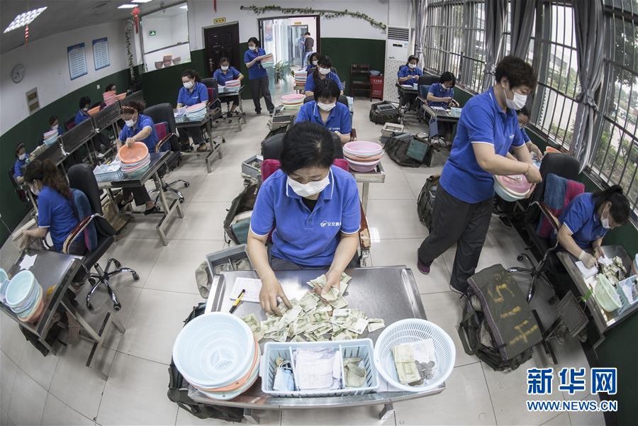 6月14日,点钞员在武汉公交票务公司青山分公司工作。