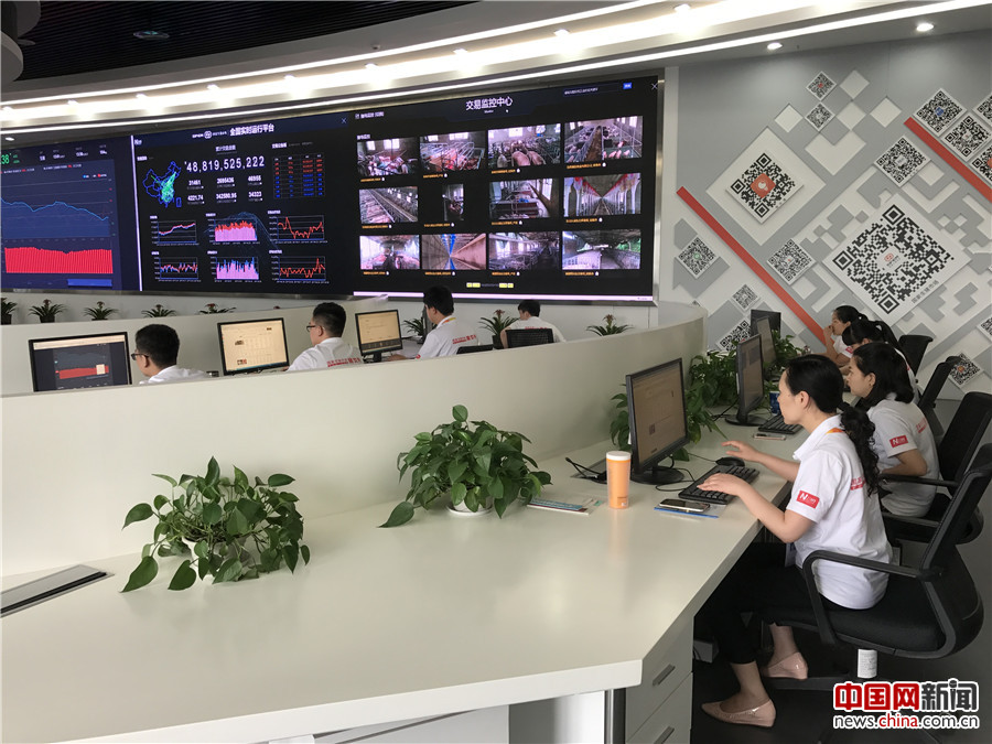 11、2017年6月30日,“共舞长江经济带——探访长江经济带区域协同生态发展之路”网络主题活动采访团来到重庆市荣昌区生猪交易市场。图为生猪交易市场大数据平台,工作人员在操作交易平台。中国网记者 吴佳潼 摄。