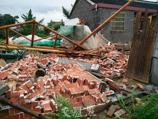 富安镇团结村的一位大妈告诉记者,事发时,她在村里邻居家串门儿,刚出大门准备回家,头顶一片黑压压的乌云袭来,她迈开大步迅速往家中跑。“就几秒钟,眼前的一排房屋就被刮倒了。”