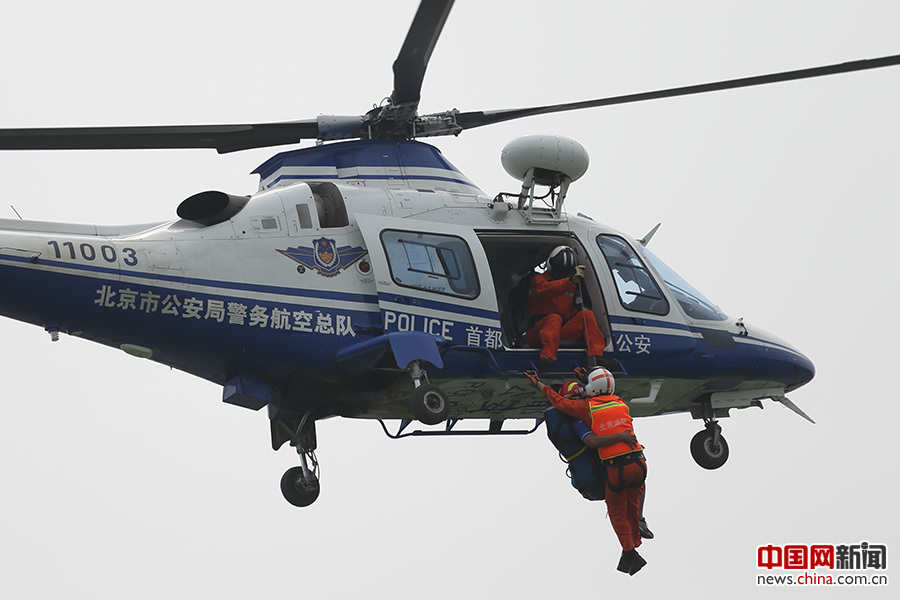 北京市公安局警务航空总队的直升飞机亮相演练。中国网记者 陈维松 摄