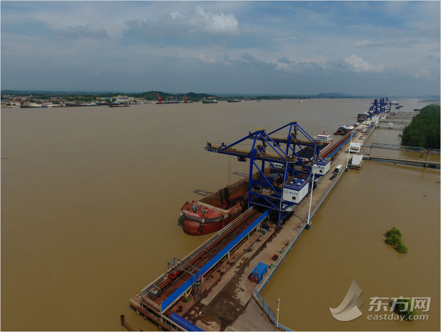 黄石新港是新建设的港口,码头泊位、后方陆域等均在近两年建设,在港口规划布局、设备选型等方面可充分发挥规划先导的优势,按照节能环保的要求进行超前规划,避免很多老港口、老园区存在的问题。图为航拍的黄石新港一角。