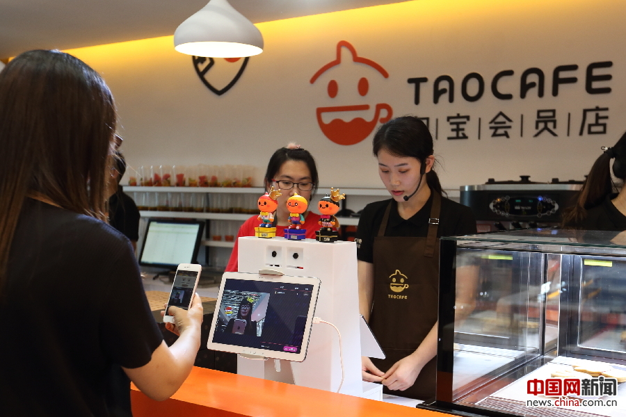 2017年7月8日,浙江杭州国际博览中心,阿里巴巴在第二届淘宝造物节上推出阿里无人超市“淘咖啡”。它是一家集购物与餐饮于一体的无人店,顾客可以扫手机进店,然后在店里自己选购商品,在出店的时候,柜台将自动计算商品的价格,客户利用支付宝支付。中国网记者 陈维松 摄