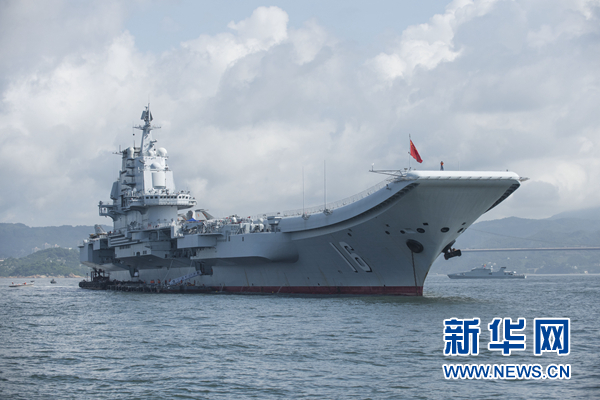这是7月9日拍摄的锚泊在海上的辽宁舰。新华社记者 刘昀摄