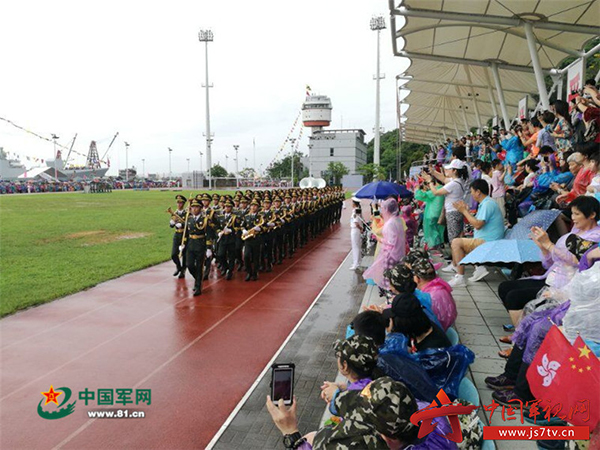 7月8日上午,香港观众冒雨参加营区开放活动。