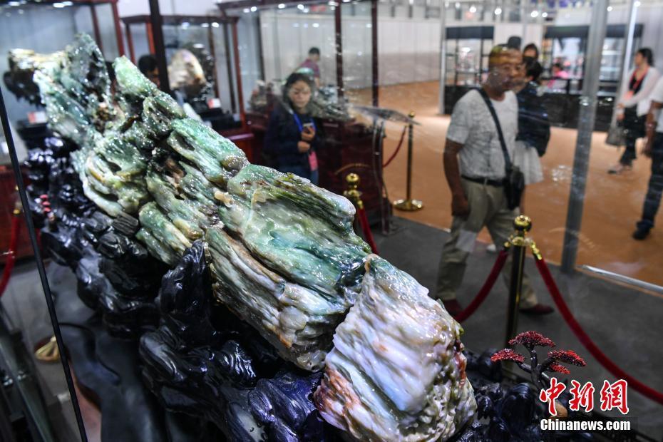 7月10日,民众欣赏标价10亿元的树化玉。当日,以“传承-时尚”为主题的2017中国昆明国际石博览会开幕,一参展商带来的树化玉标价10亿元人民币。中新社记者 任东 摄