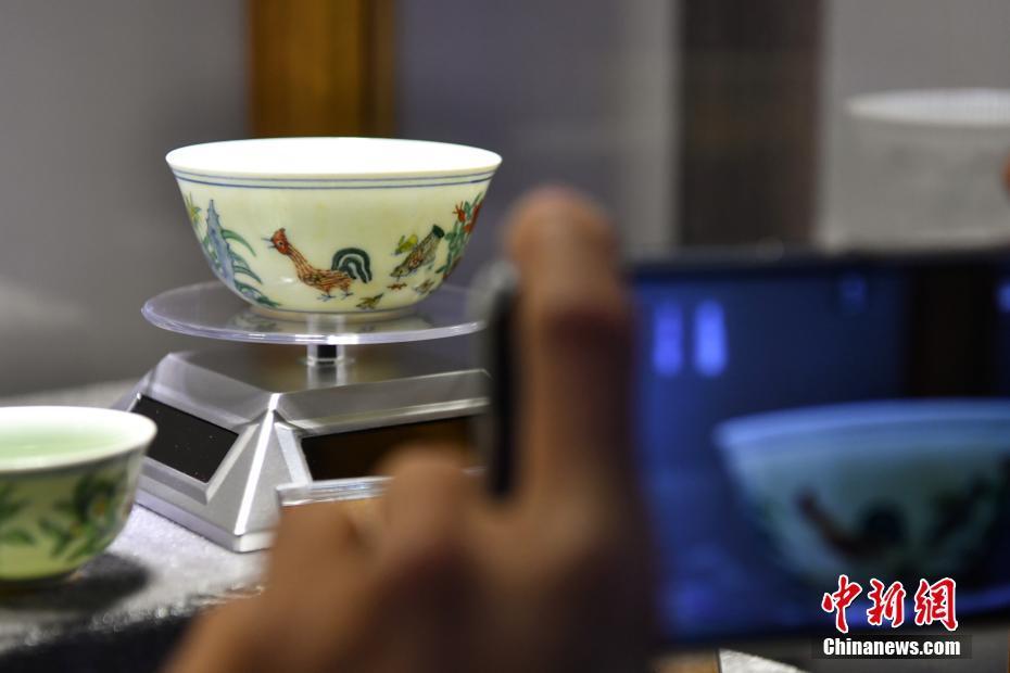 7月10日,以“传承-时尚”为主题的2017中国昆明国际石博览会开幕。其中来自河南洛阳华夏遗珍博物馆的明成化年制“鸡缸杯”吸引民众眼球。图为展出的鸡缸杯。中新社记者 任东 摄