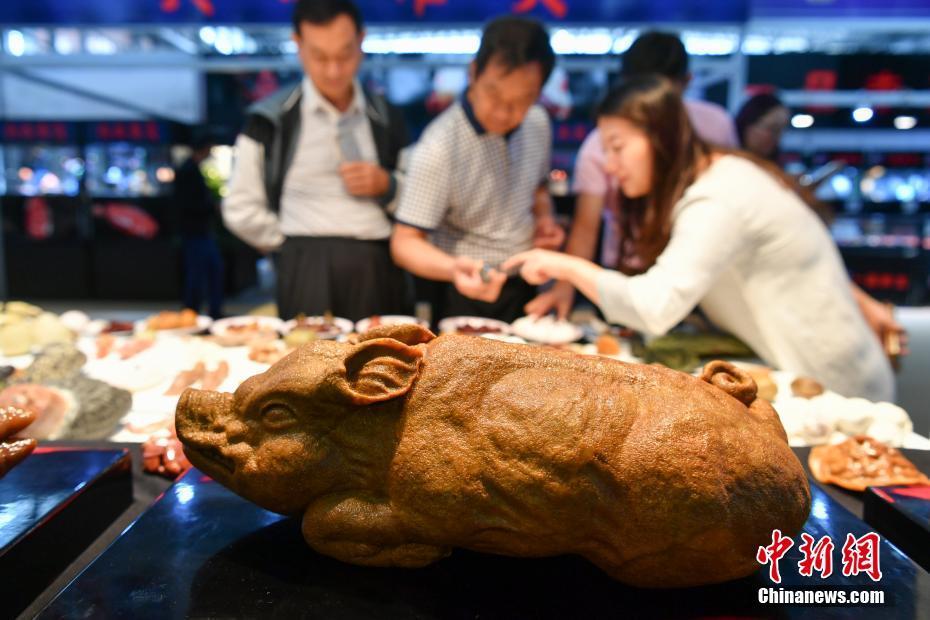 7月10日,石头制成的各式“菜品”吸引参观者。当日,以“传承-时尚”为主题的2017中国昆明国际石博览会开幕。 中新社记者 任东摄