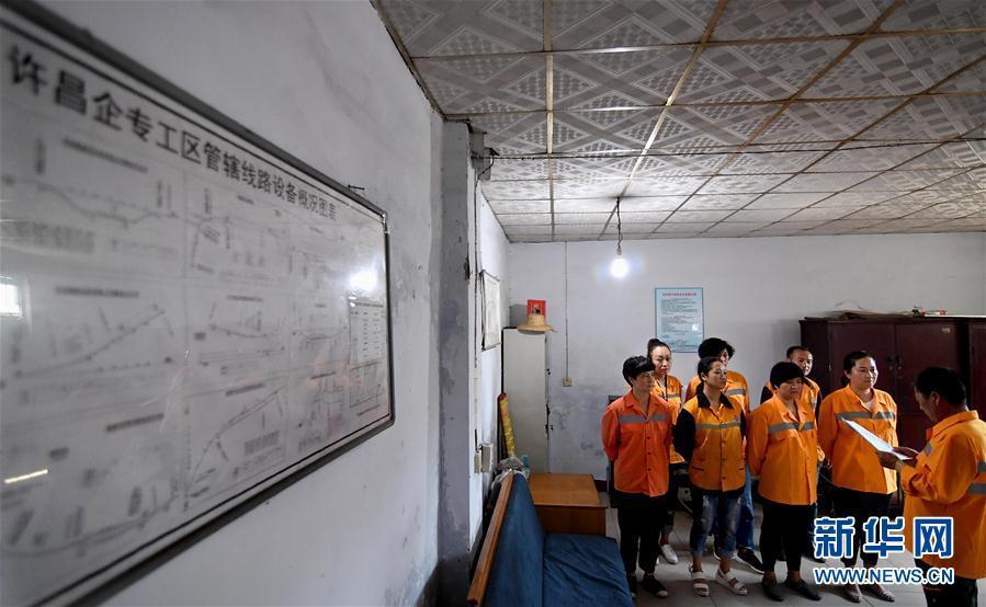 7月10日,郑州铁路局郑州桥工段许昌专用线工区职工在开班前会。成立于2001年的郑州铁路局郑州桥工段许昌专用线工区承担着3条铁路专用线5公里线路、16组道岔的养护维修任务。工区现有11名职工,其中8名为女职工。在铁道线上,扛枕木、砸道钉、换钢轨、清道床,她们与男职工一样承担着重体力劳动,确保了铁道线的安全畅通,被称为“养路娘子军”。新华社记者 李安 摄 图片来源:新华网