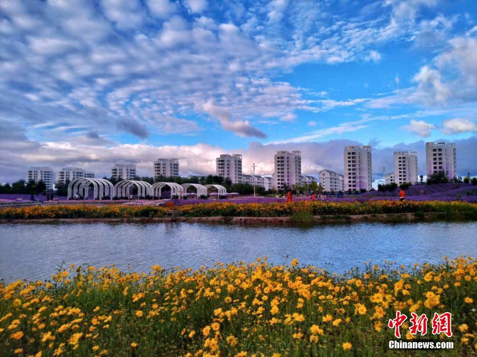 7月27日,甘肃金昌在连续几天的绵绵细雨之后,天气放晴,傍晚时分,紫金苑景区云霞变幻,美轮美奂。 王永松 摄