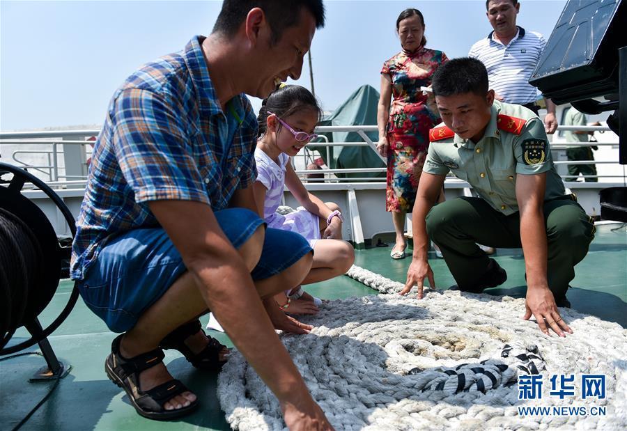 7月30日,深圳市公安边防支队烈士艾伟的妹妹艾和平与父母一起来到哥哥生前战斗的地方,了解哥哥战斗事迹,圆了多年的心愿。艾伟本是独子,牺牲一年多后,父母又育妹妹艾和平。今年已经10岁的艾和平从小听着哥哥的事迹长大,多年的心愿是要到哥哥生前生活战斗的地方看看,去寻访哥哥当年的足迹。得知她的心愿后,今年暑假期间,深圳市公安边防支队邀请远在江西的烈士一家人,来到位于深圳东部的船艇大队参观,并登上船艇,看看艾伟曾用生命守护的一方海域。 2005年11月7日晚,艾伟与战友驾驶44101艇艇在深圳大梅沙洲仔岛附近查缉走私过程中,遭遇走私分子暴力抗法,身负重伤,经抢救无效牺牲,被公安部边防管理局批准为“革命烈士”,追认中共党员。新华社记者毛思倩 摄