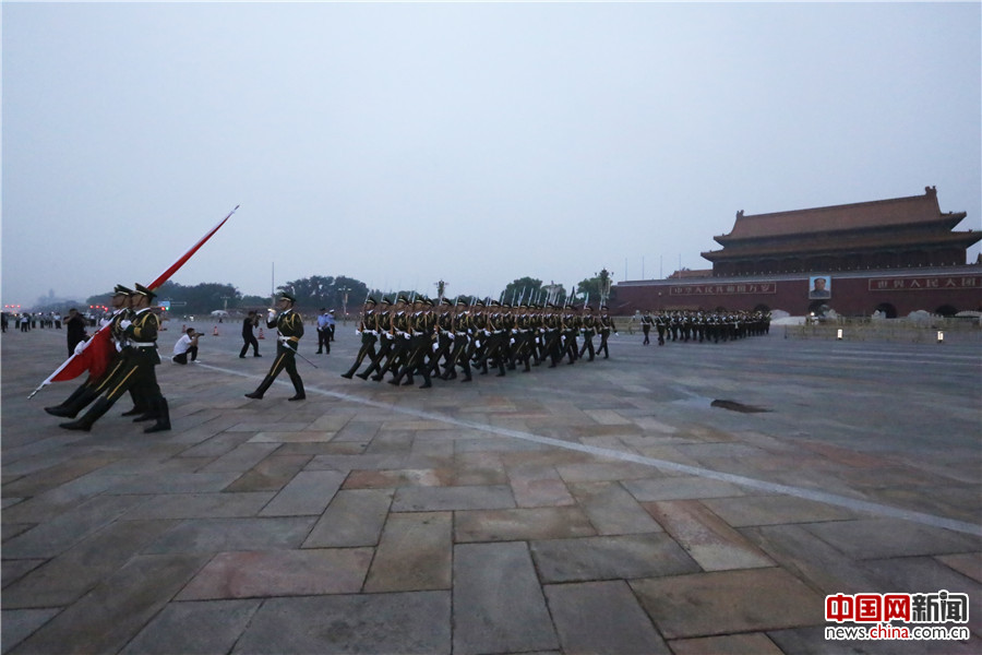 伴随着高亢的音乐,护卫方阵穿过长安街,向天安门广场走来。 李超 摄