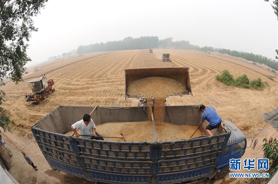 工人在河南省沈丘县北杨集乡林寨村村民林峰的麦地里收获小麦(2012年6月5日摄)。林峰流转了1000多亩耕地,进行机械化种植生产。与贫困斗,唯改革者赢,唯改革者进。改革,推动着反贫困斗争一步步走向胜利。久困于穷,冀以小康。这是中华民族千年追求的梦想;这是中国共产党人初心不改、前赴后继的百年拼搏;这是党带领人民用短短30多年让7亿多人脱贫,并将在未来3年让4000多万群众走出绝对贫困的伟大决战。新华社记者 赵鹏 摄