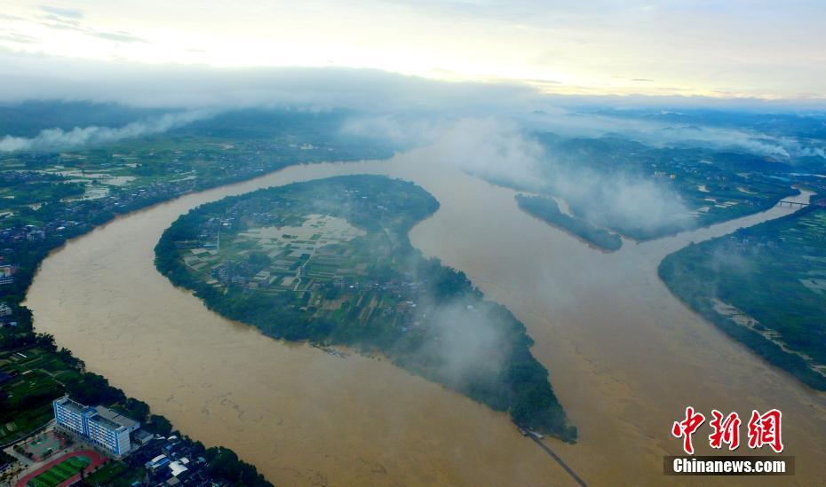 8月14日,航拍珠江上游融江广西柳州市融安县段,洪水将农田淹没。受持续强降雨和上游来水共同影响,珠江上游的融江融安县段14日18时水位117.21米(警戒水位114.60米),超警戒2.61米。强降雨造成当地部分道路中断,民房被淹,农作物被毁,当地已启动防汛Ⅳ级应急响应。中新社记者 谭凯兴 摄