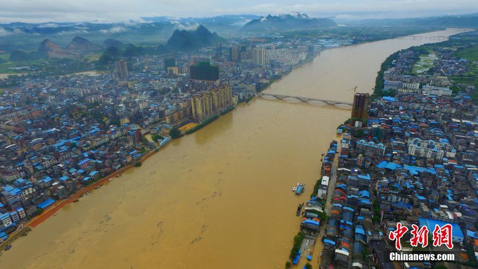 8月14日,航拍珠江上游融江广西柳州市融安县段,洪水将农田淹没。受持续强降雨和上游来水共同影响,珠江上游的融江融安县段14日18时水位117.21米(警戒水位114.60米),超警戒2.61米。强降雨造成当地部分道路中断,民房被淹,农作物被毁,当地已启动防汛Ⅳ级应急响应。中新社记者 谭凯兴 摄