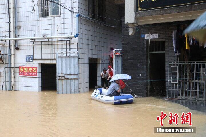 广西柳州今夏第五次被洪水袭击 居民合伙买船出行